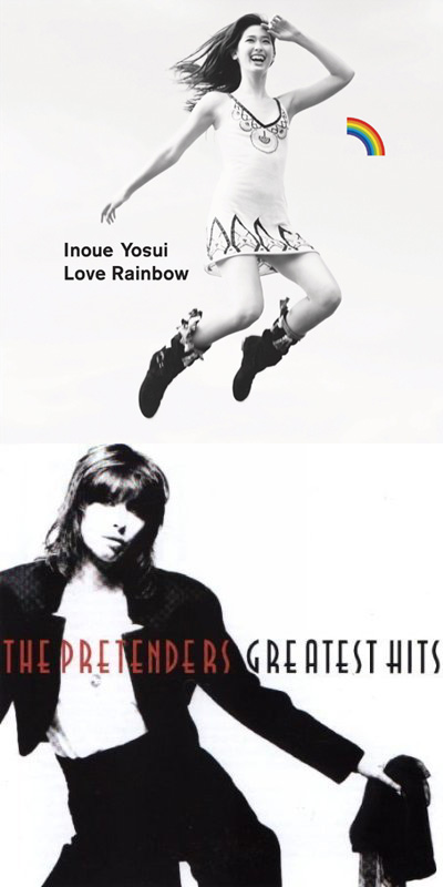 と言う事は確信犯?って事でしょうか。それに添付画像は上が陽水さんのニューシングル「Love Rainbow」のジャケット。下がザ・プリテンダーズの「Greatest Hits」。『モノクロ、女性一人、一箇所だけ違う色』ってデザイン・コンセプトも似てる。