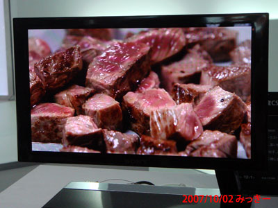 画面中に白色の面積が多い時は何もせず、白色の部分が少量の時に白色がきらきらするようにしてあるそうです。これは素人さんがメリハリがついた画像が好みなのと、実はこの有機EL液晶は解像度が高くないので、きれいに見えるように白色をくっきりさせないとぼやっとした画になるからです。それに、白だけ調整できるのはEL液晶だけ。通常の液晶テレビでは常時バックライト(白色)が点きっ放しなので無理とのことです。