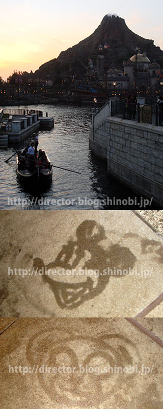 写真はスチームボート・ミッキーズの前の歩道に描かれていたもの。ミニーマウスとダッフィーに見えるはず。ではご存じでない方のために、ちょっとご説明を。