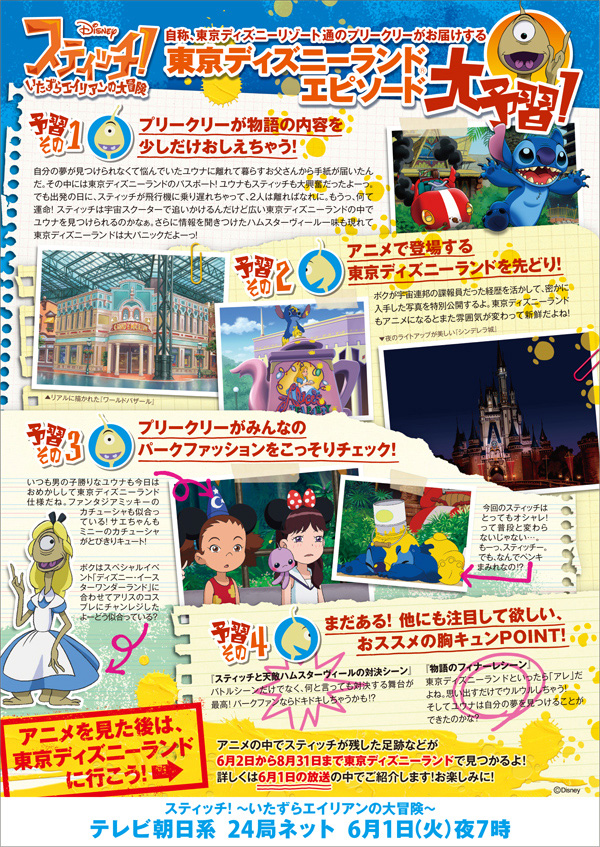 テレ朝アニメ『スティッチ!~いたずらエイリアンの大冒険~』の今夜6月1日(火)午後7時放送の第26話『スティッチ、東京ディズニーランドに行く!』で、東京ディズニーランドが史上初アニメ化される。