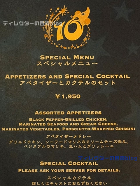 『ブルー』はシナモンリキュールやグリーンアップルジュース、シナモンの香りも田多様さわやかなカクテルで、オレンジの飾りは9/4から始まるショー『Be Magical!』に登場する鳳凰をイメージしているそう。