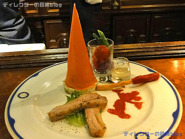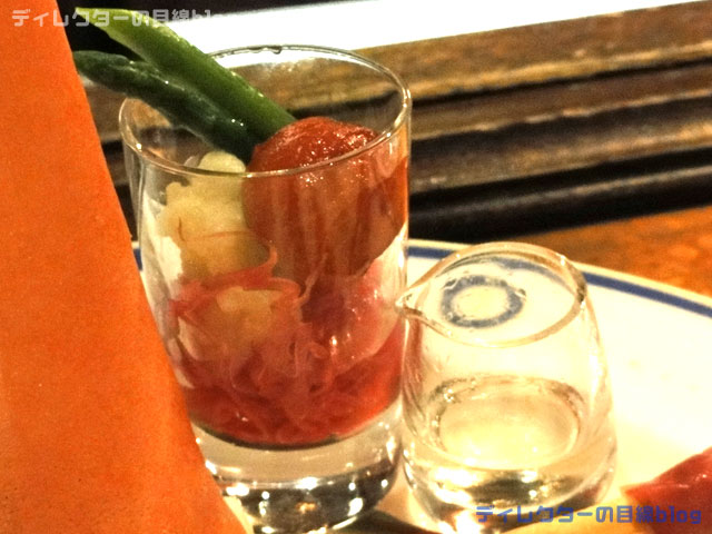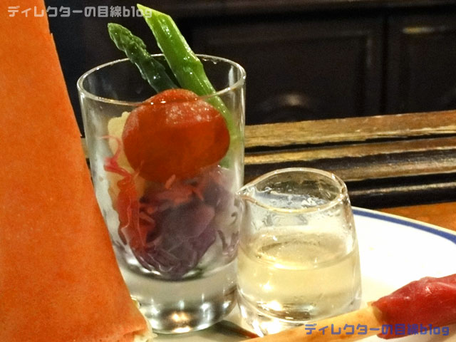 中でも『ベジタブルのマリネ』では魔法が楽しめる。魔法のドレッシング(レモン風味)をマリネに掛けて少し待っていると、写真のような変化が!舌でも目でも楽しめる。