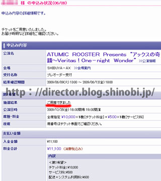 e+チケットでプレオーダーしていた待望のチケットの予約ができました。Webサイトでも確認できました。ああ、良かった。これで年末までのエネルギー源を確保したって感じ。