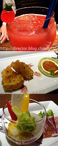 アペタイザーとカクテルのセットが1,750円。カクテルのみが1,000円。ってことはアペタイザーは実質750円ってことになる。これはお得。結構しっかしとした味付けだから、スタンダードカクテルにも十分に合う。これは年中あっても良いと思う。