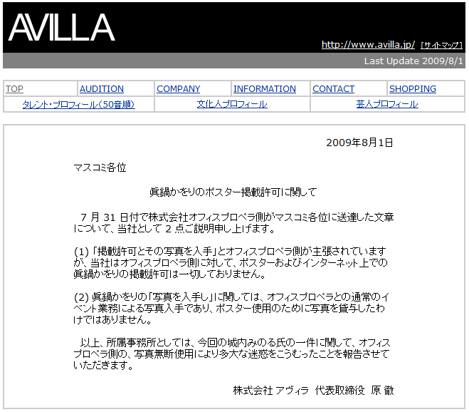 先のblogに書いたように、イベント会社『オフィスプロペラ(公式 ※音が出るので要注意)』が怪しいですね。彼が双方に無責任に対応し、更にマスコミ宛てにも適当なFAXを送ったのが逆効果。って言うか『オフィスプロペラ』がすべての原因に見えるが。