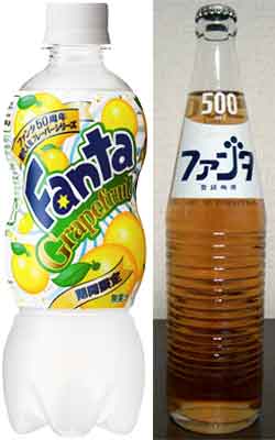 第一弾は1月14日(月)より全国で「ファンタ グレープフルーツ」が登場予定で左図の左側のペットボトルデザインで発売されます。