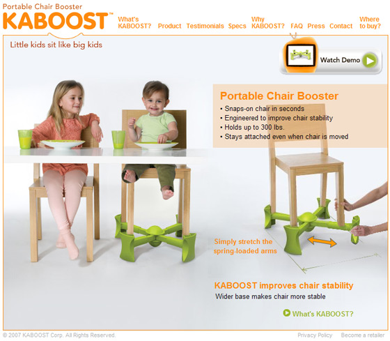 個人的にウーマンズヘルス関連の学会員なので、女性の健康やそれに伴う子育て支援等にも興味があります。そこで見つけたのがこの道具。何と言ってもデザインがステキです。最近こそデザイン性の優れた子育て支援グッズが増えましたがまだまだ外国製ばかり。またよく見るとただ椅子を乗せる台座と言うかなり強引な商品にも関わらず、色もPOPだし、折りたためて持ち運ぶっていう豪快さもGOOD。アメリカなら車に積んでおいて、子供のいないご家庭に行ったらおもむろに出すんでしょうね。