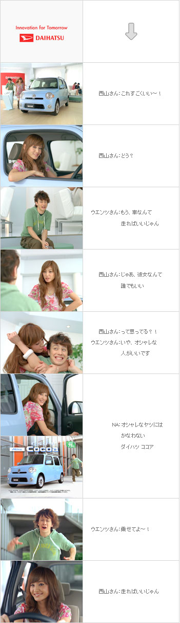 ココアのCMには2種ある。一つは彼女が愛車の事しか考えていないのを彼氏が不満に思うって、まあ何とか許容ができる『ブティックデート篇』。しかし、彼女の一方的な「いっつも考えてる?」って強引な括りで会話が成立していない時点で正直イラッとするが、これで止めておけば良かったと言わざるを得ない。