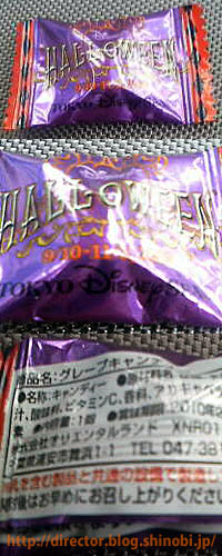 アメリカンウォーターフロントでハロウィーンのコスチュームのキャストに「トリック・オア・トリート」と言うと、「ハッピー・ハロウィーン!」と言ってオリジナル・キャンディをくれます。写真にあるように、オリエンタルランドの特製です。ちなみに時間は日没まで。