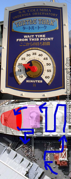 いやぁ、正直さすがディズニーと言わざるを得ないアトラクションでした。簡単に言うと、スクリーン上の映画『ファインディング・ニモ』に登場するクラッシュ(アオウミガメの父)と会場が対話をしながら進行する映像鑑賞体験型アトラクション。ストーリー展開がよく考えられているので大人でも十分子供になりきって楽しめるのがスゴイ。