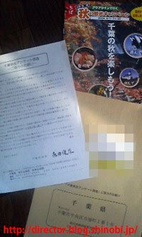アンケートに同封されていた『アクアラインで行く 秋の観光キャンペーン』のパンフレット。千葉県民へこのパンフレットを同封する千葉県知事の意図がわからない。こう言うのを黙ってもらう県民が増えれば4年間安泰とで思ってるのか?勿論、これが踏み絵なら大したものだが。