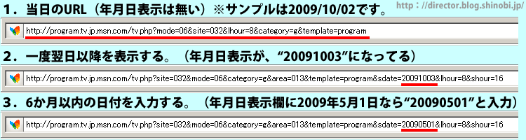 4.URL欄の8ケタの数字を、6か月以内の見たい日付に変更して、更新。