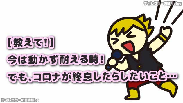 そこで、皆さんにお聞きしたい。皆さんは、新型コロナウイルス感染拡大が終息したら、やりたいことは何ですか? 感染のことなど一切気にせずに、思いっきりやりたいことです!
