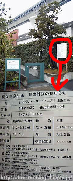 2012年、アメリカンウォーターフロントのニューヨークエリアに約115億円で建設予定のTDS新アトラクション『トイ・ストーリー・マニア!(プレスリリース PDF:204KB)』の建設看板が気になっていたので、やっと先日撮影してきた。看板の設置場所は、東京ディズニーシーの入口前、リゾートライン本社前だ。