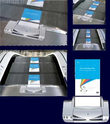 エスカレーターの乗り口に男性の顔とロゴが貼ってあり、各段にいろいろなヘアスタイルが貼ってあって、ステップが動くと髪型が変わるって仕掛け。