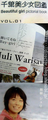 その名は『千葉美少女図鑑(公式)』。千葉県に美少女を増やそうってコンセプトで、県内の美容室を中心に、素人の美少女をモデルに使った無料のファッション誌。これが若い人の間で大流行。発行1週間で数万部が無くなる程。その第1号にジュリちゃんが載ってる。光栄にもジュリちゃん→大徳家のご主人→私と言う経路で貴重な一冊を頂いた。