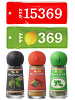 その他にも、数字だけで商品を表現したり、ガラス容器を並べる楽しさを提供したり。画像は上から「サクマ製菓の15369」「サクマ製菓のれもん369」「エスビー食品のスパイス&ハーブ」です。