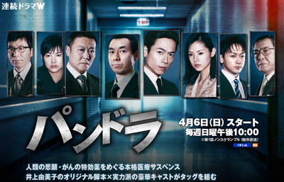 連続ドラマW第1弾「パンドラ」は、「白い巨塔」「14才の母」「GOOD LUCK!!」「マチベン」「火垂るの墓」など、数々の大ヒットドラマを世に送り出してきた人気脚本家・井上由美子が書き下ろす骨太な本格医療サスペンス。