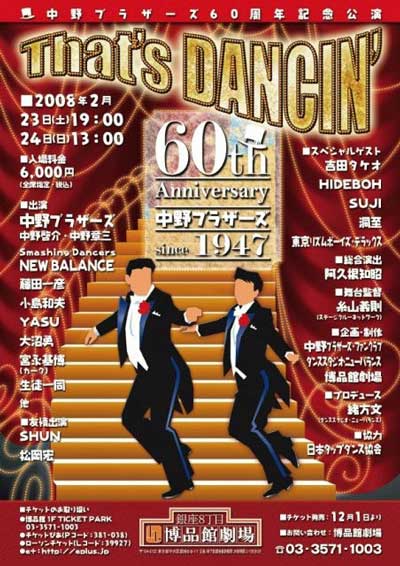 中野ブラザーズと言えば、日本のタップダンスの先駆者というのと、ビートたけしさんのタップの師匠、それに50年代にパパイヤ鈴木さんのお父さんが所属していた「東京キューバンボーイズ」のダンサーを務めていたくらいの知識でしたが、久し振りに拝見しましたが一目でわかりました。お二人はちょうど私の両親と同世代。それであのセンスとダンス。脱帽モノでした。