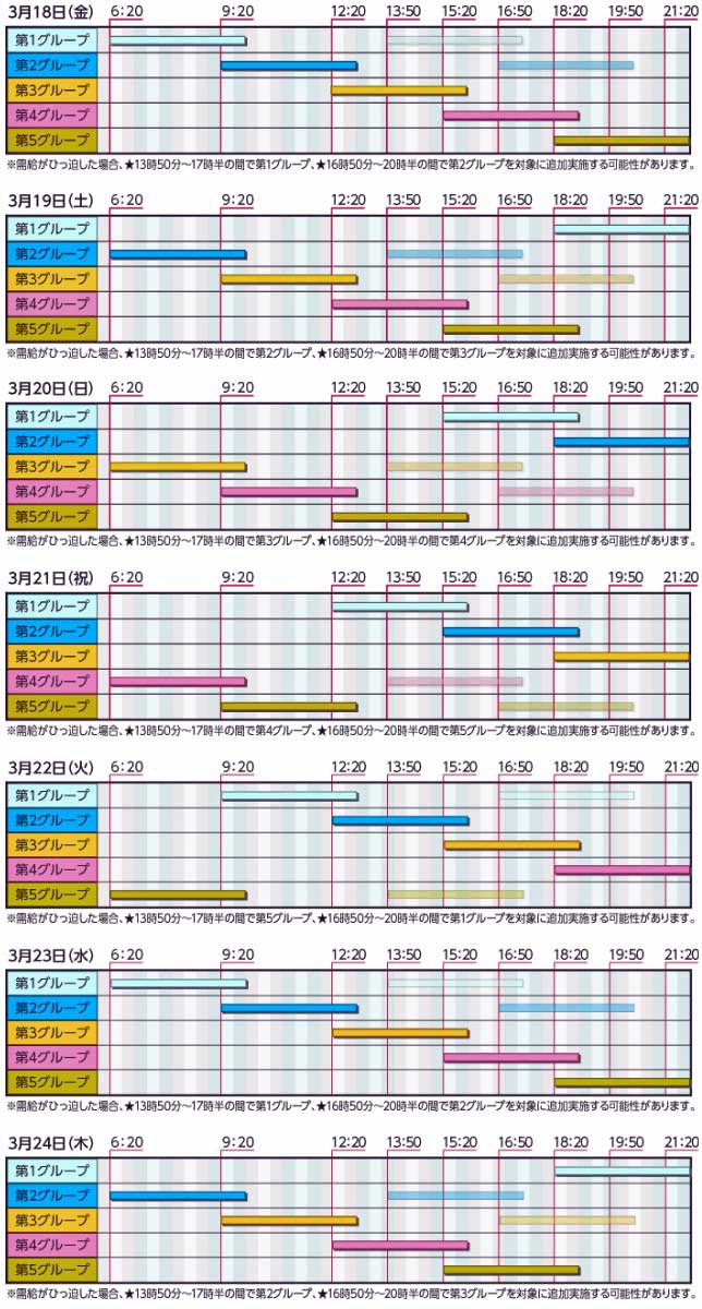 携帯電話用の計画停電予定スケジュール表(3/18~3/24)