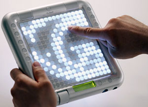 20センチ四方の金属フレームのボディにある、16×16個の白色LEDボタンを押すことで演奏するそうです。ニュースリリースには、「音楽の知識がなくても視覚的・直感的に作曲/演奏することができる」とありますが、確かに単純に音を出すだけなら誰でも出来そうですが、思うように演奏するにはそれなりの知識は必要な感じです。