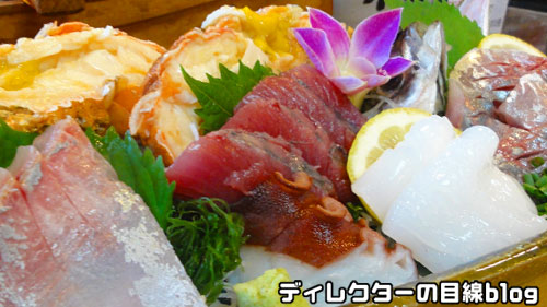 酒を一杯やりつつ楽しむのが「みっきー流」。まずは『おまかせ刺身盛り合わせ』。今回は珍しい『セミエビ』があった。伊勢海老より身が締まっており、旨味も歯触りもしっかりした印象で美味かった。