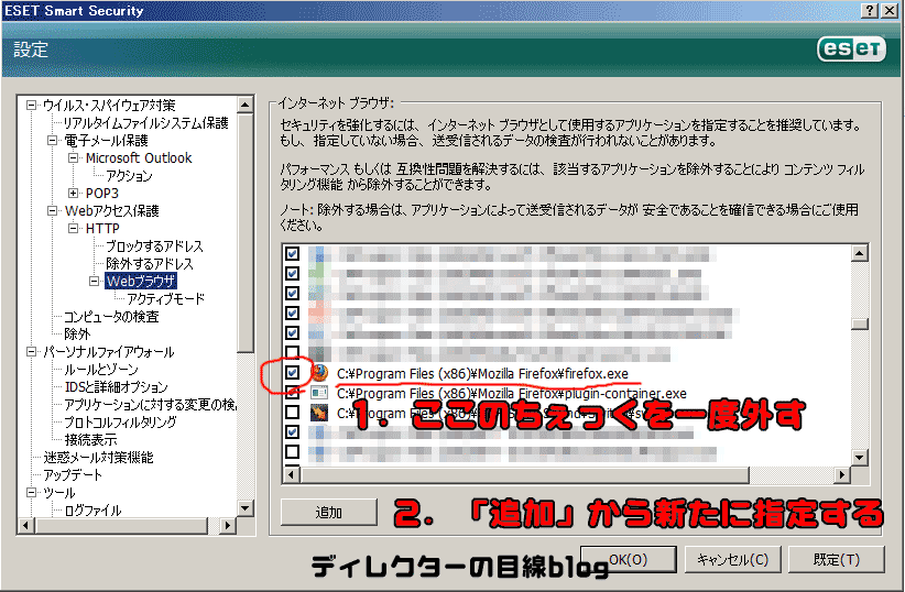 4.下の[追加]ボタンから、新たに『Firefox.exe』のファイルを選択する。