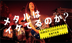 元MEGADEATHのギタリストで現在新宿在住のギタリスト・マーティ・フリードマンが「メタルはイケてるぜ」と叫ぶのは、日本鉄鋼連盟が2009年春の卒業予定者に対する採用活動のPRポスター。今、鉄鋼業界は久し振りの好景気なので、こんな遊び心のあるPR戦略が打ち出せるんでしょうね。