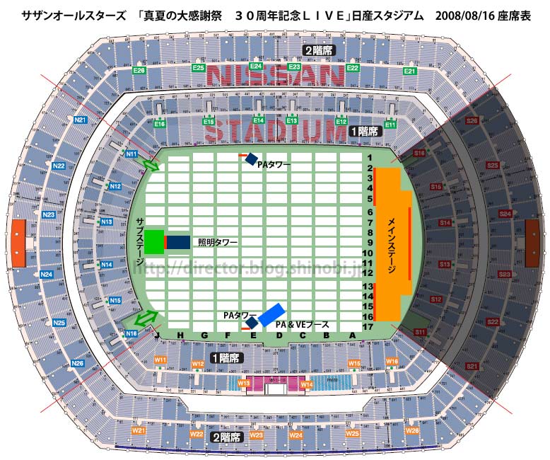 特にアリーナ席を中心にしました。だって私も30年サザンのファンをやっていますが、自慢じゃありませんが、アリーナ席は10周年記念の西武球場初日以来ですから嬉しいんですよ(涙)。だから、きっと久し振りにとか初めてアリーナ体験のファンの方のお役に立ちたくて作りました。(まぁ、仕事でいつもやってますから)