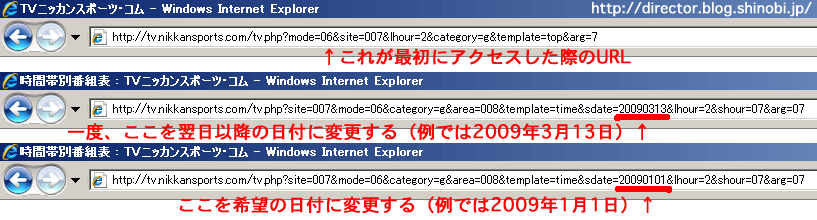 3.すると、URLの表示欄の日付部分がその日になっているのを確認。