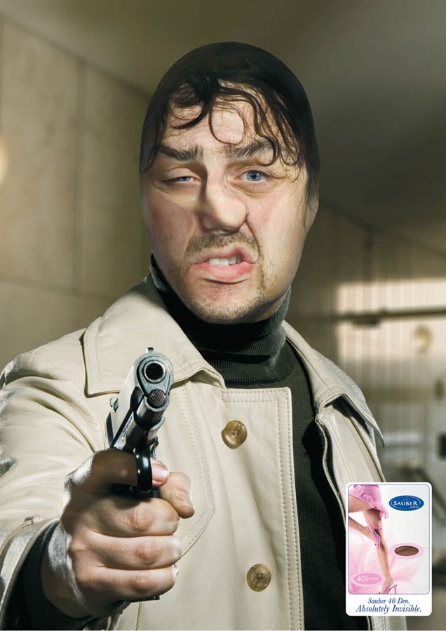 生地の薄さと透明さを表現したものだと思いますが、強盗犯とストッキングと言うベタな組み合わせが、世界的に共通する感覚なのも面白いですし、それゆえに男性にも女性にもアピールできているのが興味深いです。