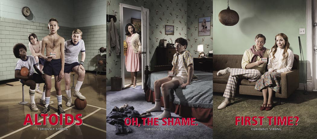 「Curiously Strong(妙に強い)」とつけられたコピーを3つの展開で見せてくれています。私が中で気に入ったのが左の作品。バスケット部の部室で何となくひ弱な男の子には、しっかりと胸毛が・・・。そこで「妙に強そう」って雰囲気ですね。他の二つも面白いですが、日本では難しいかも。